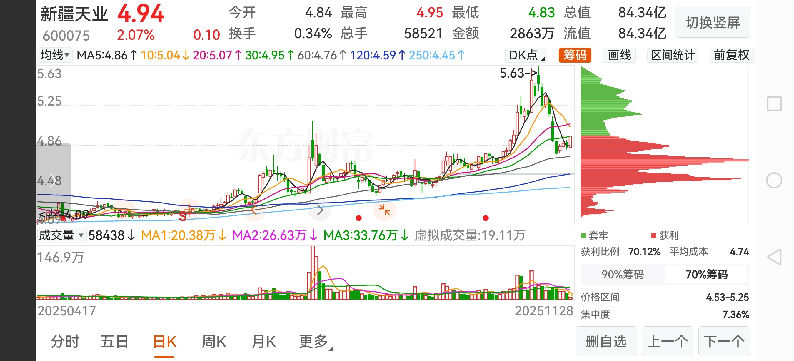 $新疆天业(SH600075)$ 这次大跌,底部筹码没有松动!知道怎么回事了吧