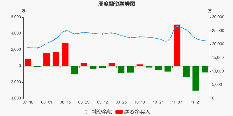 新疆天业本周(2025/11/24-2025/11/28)累计涨幅达1.22%,截至11月28日最新股价报收4.96元。从增量上来看,11月24日至11月28日融资买入交易规模4983.28万元,融资偿还规模5759.15万元,期内融资净偿还775.88万元。从存量上来看,截止11月30日,新疆天业融资融券余额2.15亿元,其中融资余额规模2.15亿元,融券余额规模24.3万元。