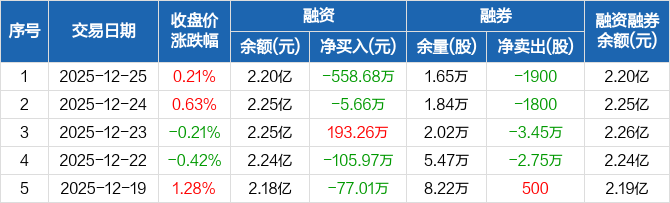 新疆天业:融资净偿还558.68万元,融资余额2.2亿元(12-25)