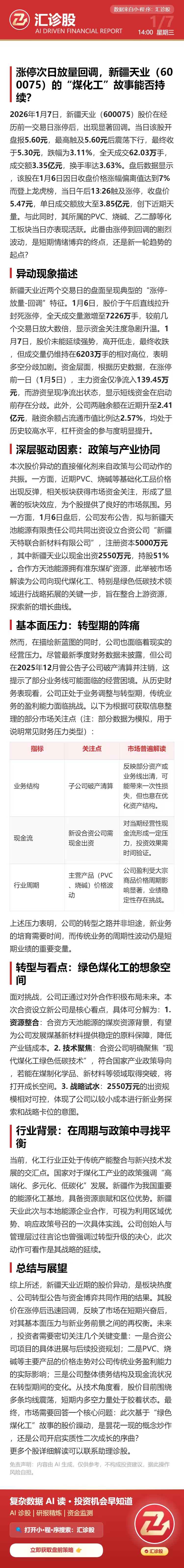 涨停次日放量回调,新疆天业的“煤化工”故事能否持续?