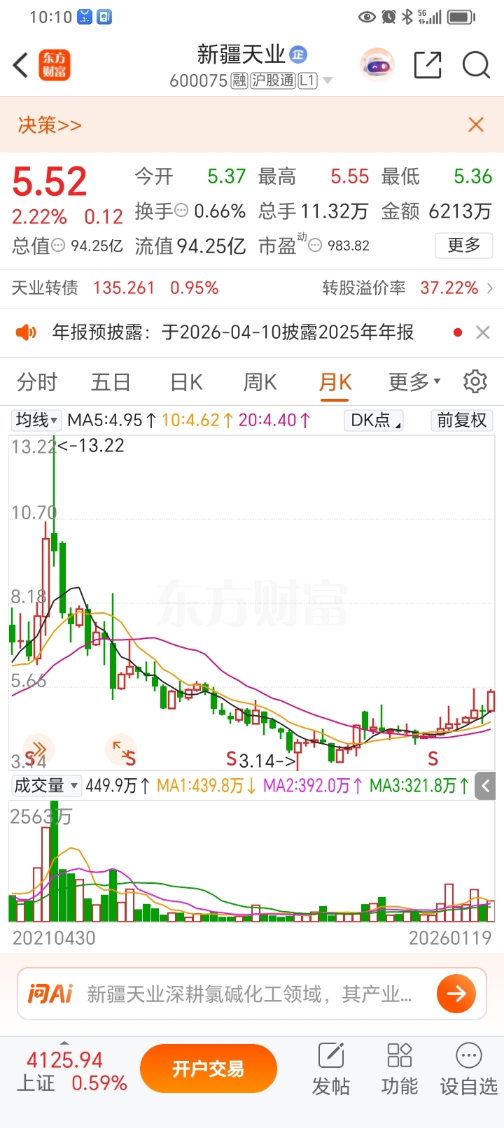 $新疆天业(SH600075)$ 月K线正在走出大圆底