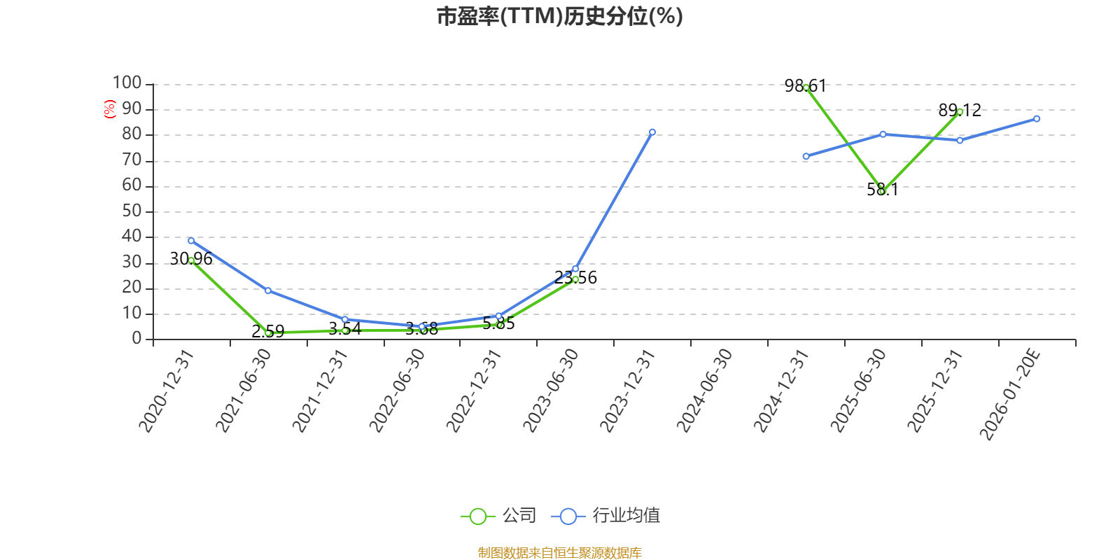 市盈率、市净率为负时,不显示当期分位数,会导致折线图中断。