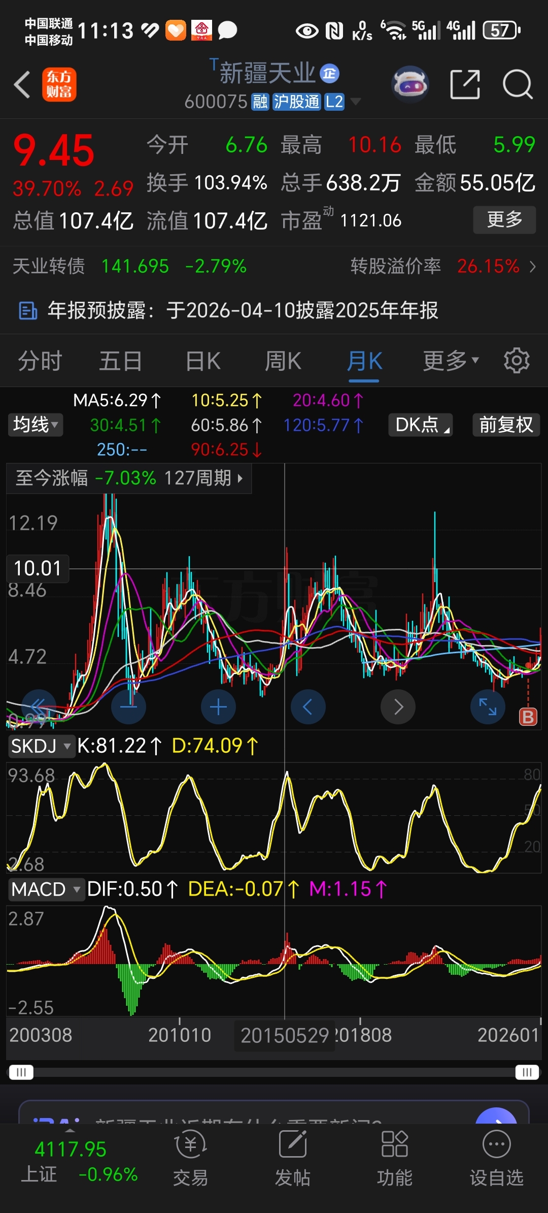 $新疆天业(SH600075)$ 股吧大佬好几个都说到十块钱清仓,俺中肯,看月线好几次都是十块出头就往下走了