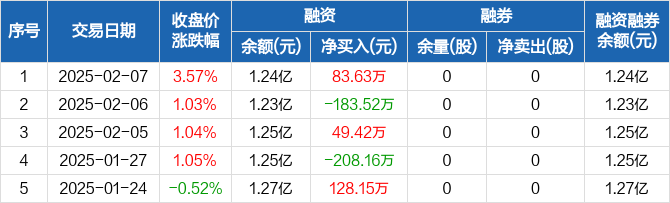 康欣新材:融资净买入83.63万元,融资余额1.24亿元(02-07)