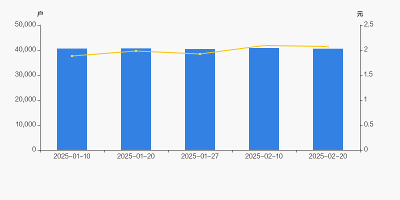 2025年1月10日至今,公司股东户数有所下降,区间跌幅为0.15%。2025年1月10日至2025年2月20日区间股价上涨10.11%。