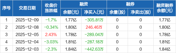 康欣新材:融资净偿还305.81万元,融资余额1.77亿元(12-09)