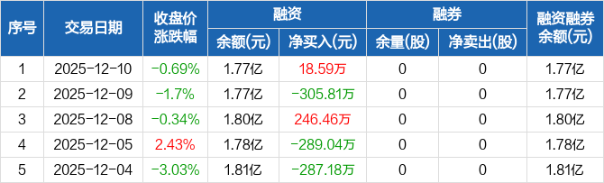 康欣新材:融资净买入18.59万元,融资余额1.77亿元(12-10)