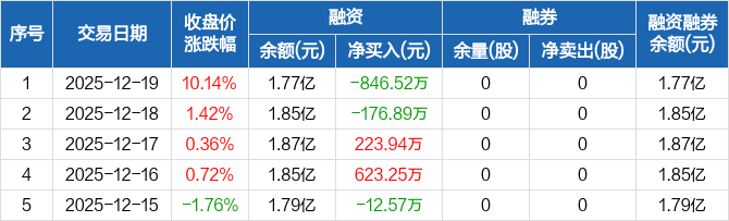 康欣新材:融资净偿还846.52万元,融资余额1.77亿元(12-19)