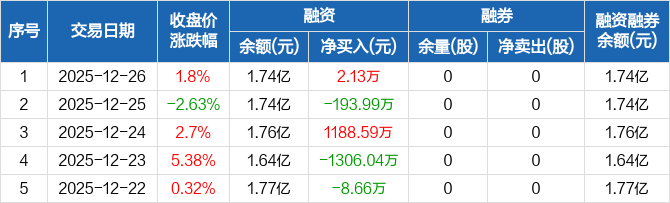 康欣新材:融资净买入2.13万元,融资余额1.74亿元(12-26)