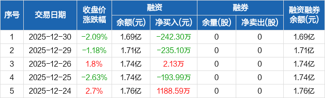 康欣新材:融资净偿还242.3万元,融资余额1.69亿元(12-30)