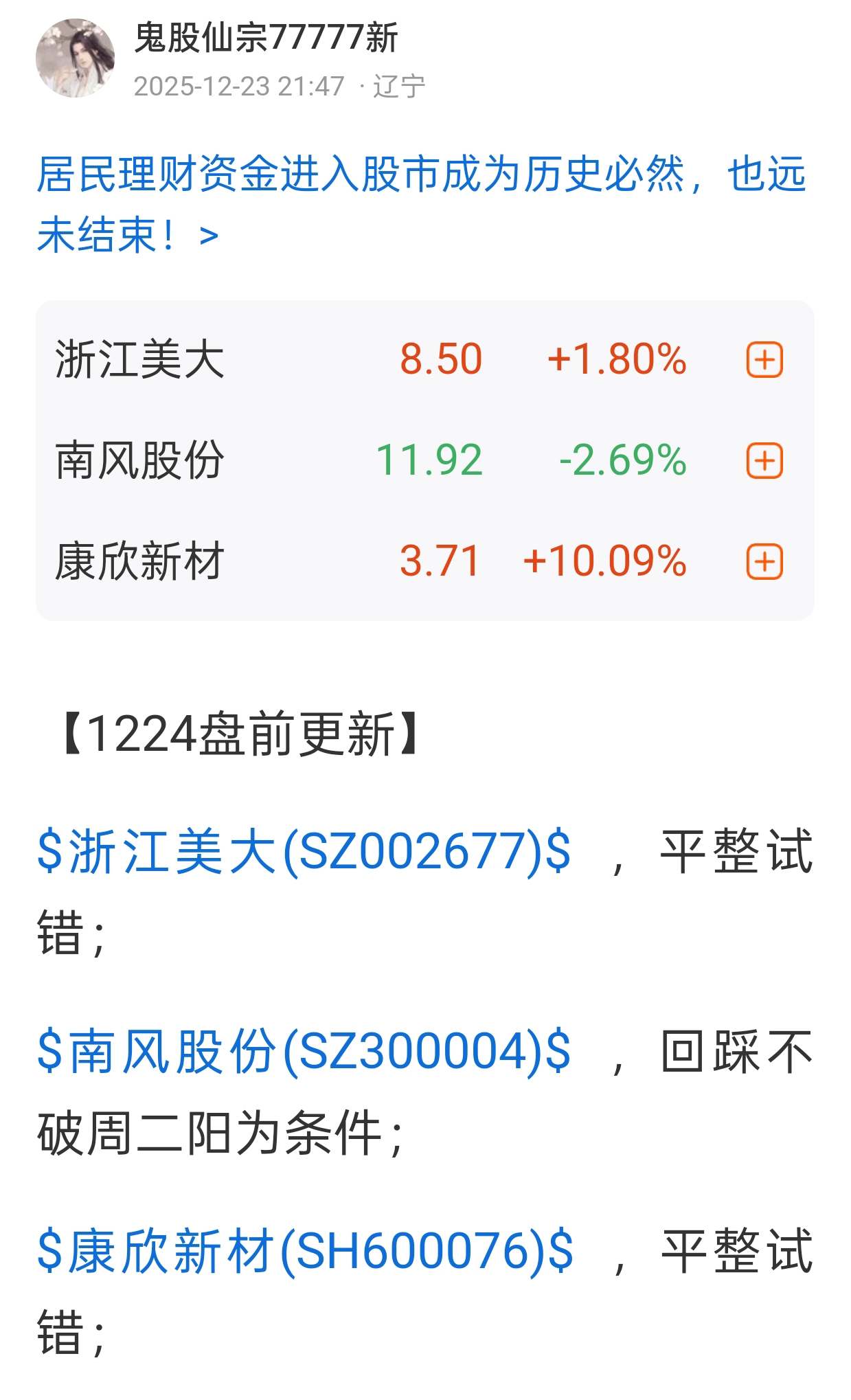 温馨提示: 1.根据《证券法》规定,禁止编造、传播虚假信息或者误导性信息,扰乱证券市场;2.用户在本社区发表的所有资料、言论等仅代表个人观点,与本网站立场无关,不对您构成任何投资建议。用户应基于自己的独立判断,自行决定证券投资并承担相应风险。《东方财富社区管理规定》