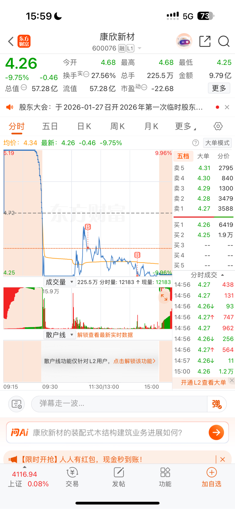 $康欣新材(SH600076)$ 我朋友在里面上班,放心,明天一字板稳了