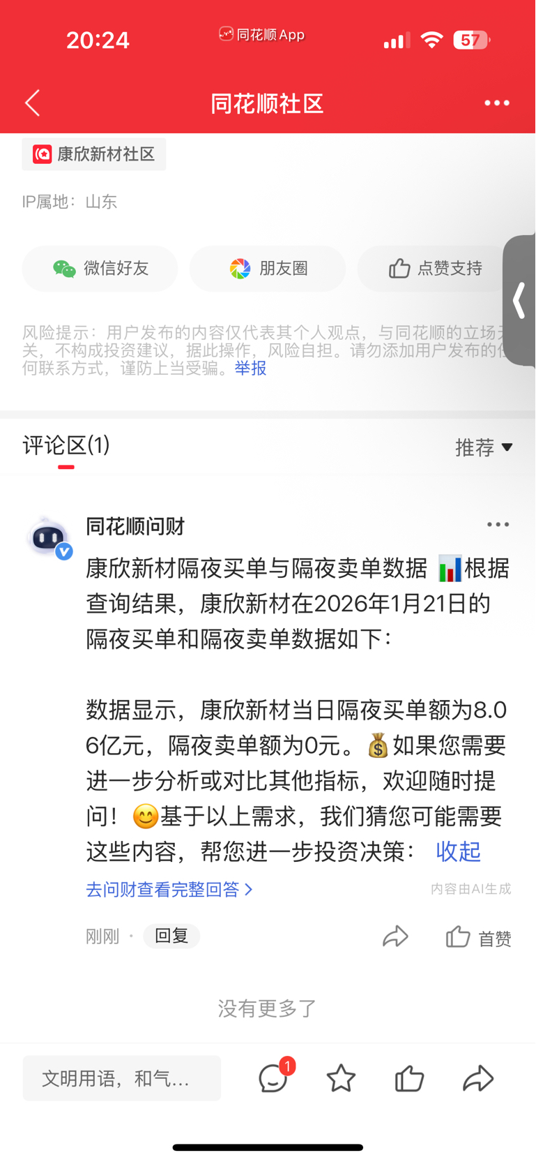温馨提示: 1.根据《证券法》规定,禁止编造、传播虚假信息或者误导性信息,扰乱证券市场;2.用户在本社区发表的所有资料、言论等仅代表个人观点,与本网站立场无关,不对您构成任何投资建议。用户应基于自己的独立判断,自行决定证券投资并承担相应风险。《东方财富社区管理规定》