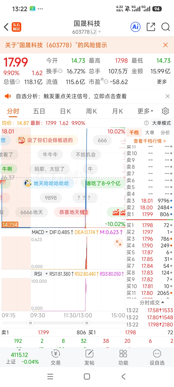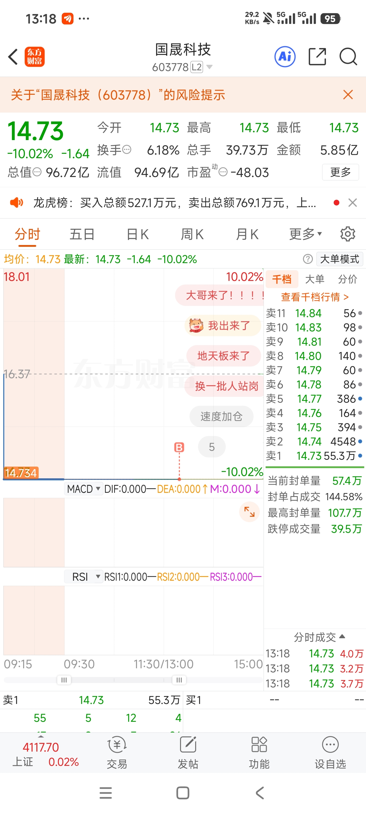 温馨提示: 1.根据《证券法》规定,禁止编造、传播虚假信息或者误导性信息,扰乱证券市场;2.用户在本社区发表的所有资料、言论等仅代表个人观点,与本网站立场无关,不对您构成任何投资建议。用户应基于自己的独立判断,自行决定证券投资并承担相应风险。《东方财富社区管理规定》