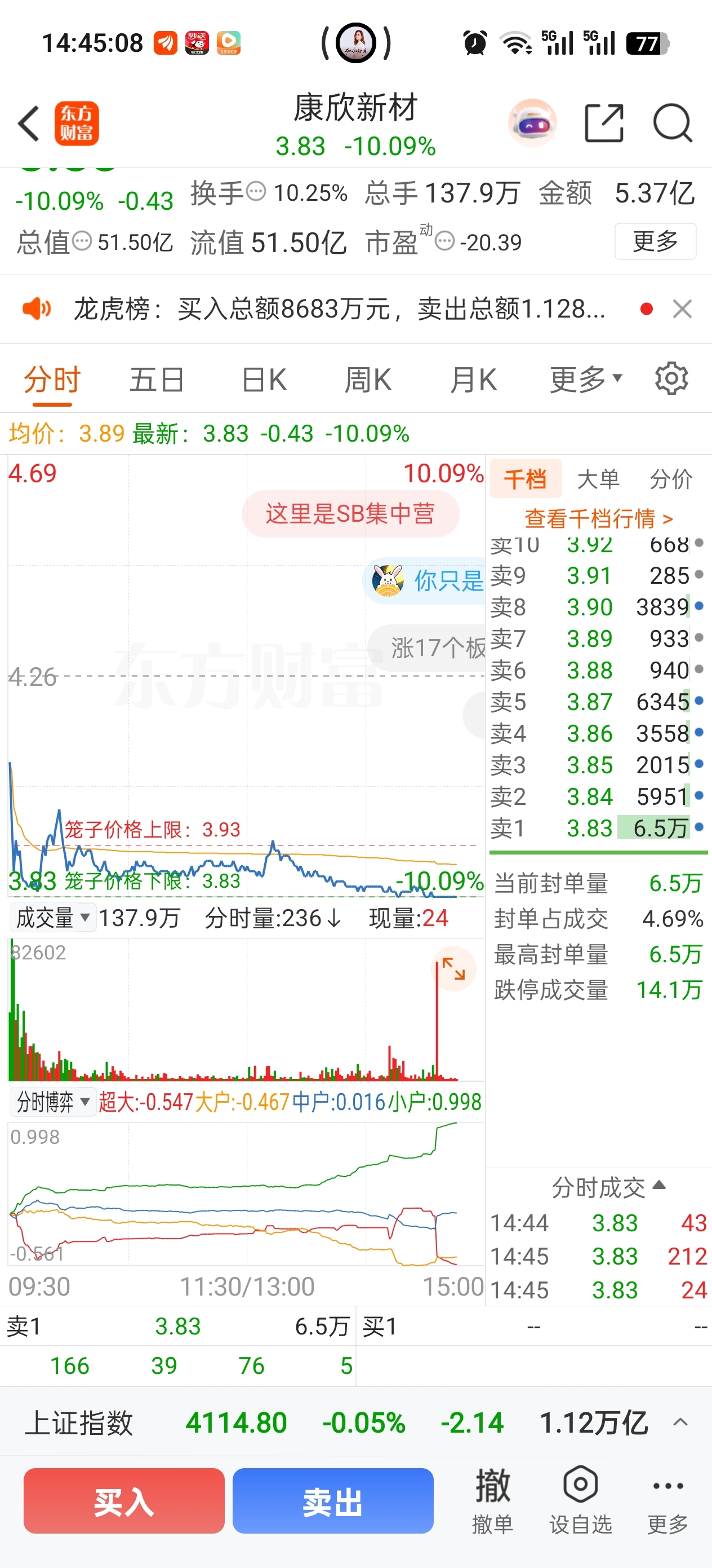 $康欣新材(SH600076)$ 一个个好恶心非要尾盘干跌停还好我撤单了