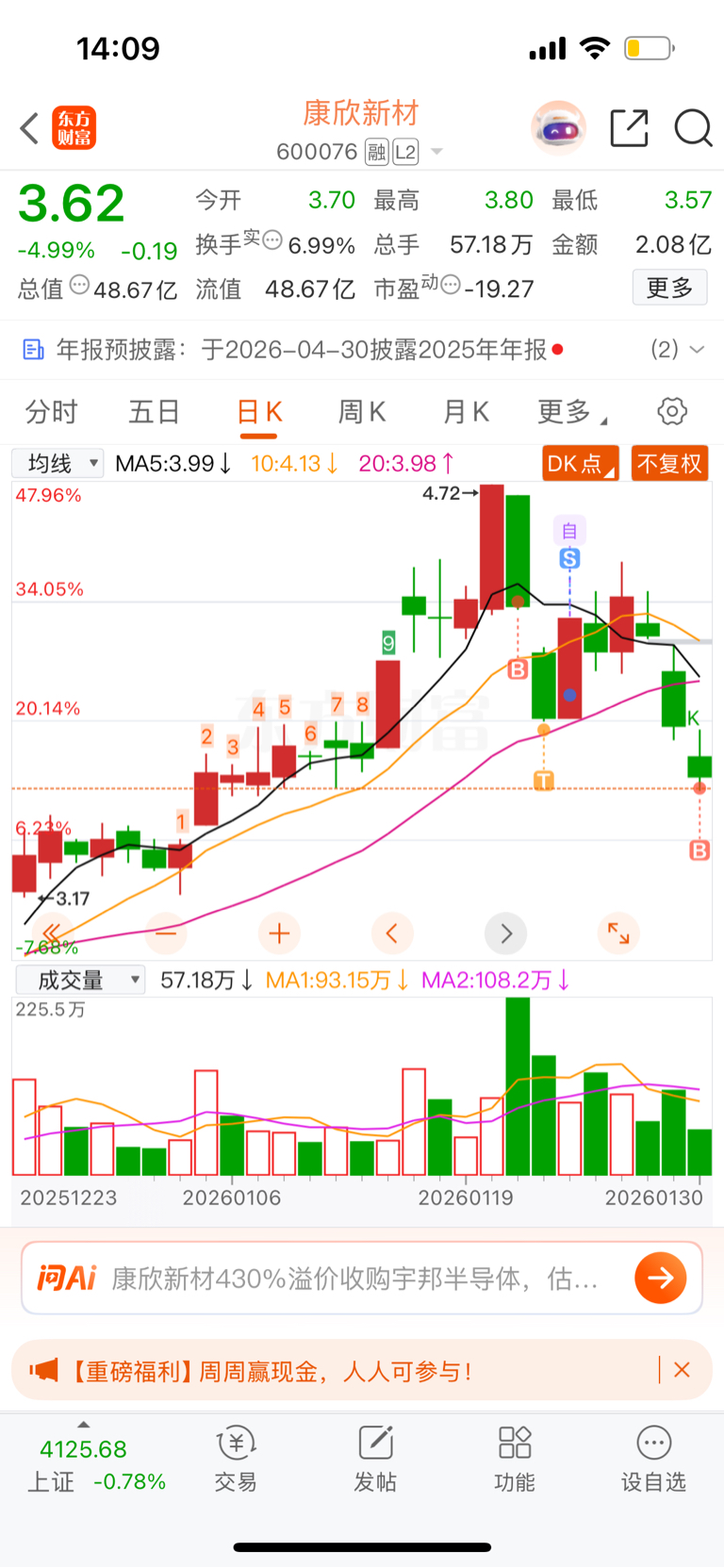 $康欣新材(SH600076)$ 在这里亏的我要拿回来