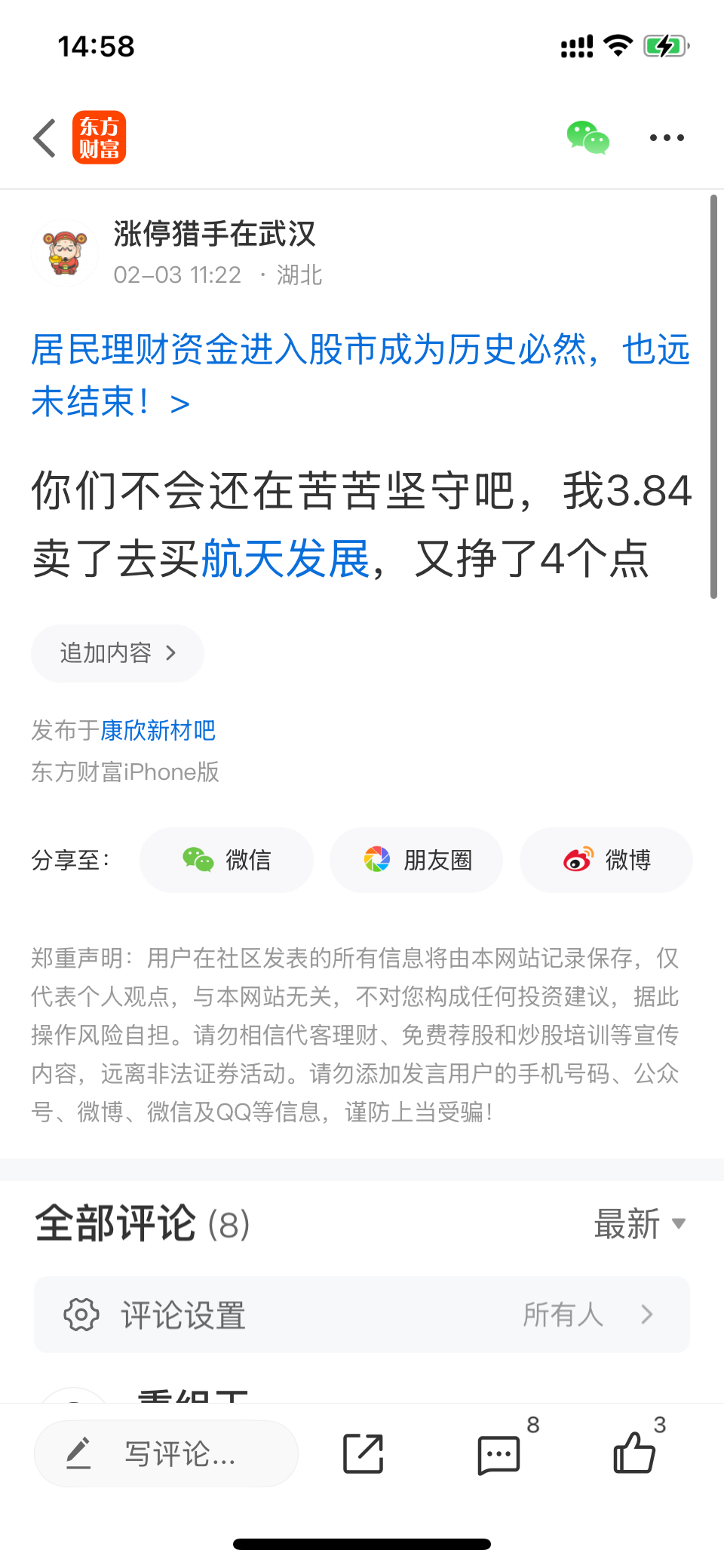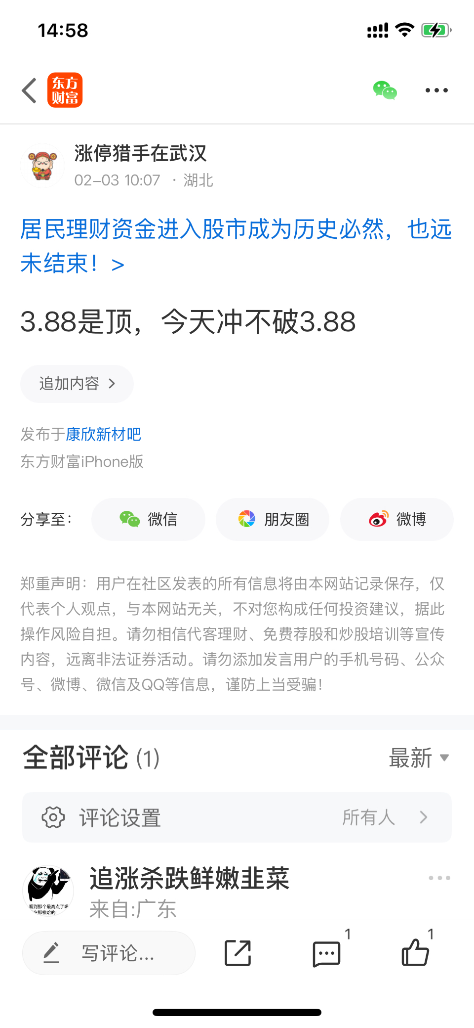 温馨提示: 1.根据《证券法》规定,禁止编造、传播虚假信息或者误导性信息,扰乱证券市场;2.用户在本社区发表的所有资料、言论等仅代表个人观点,与本网站立场无关,不对您构成任何投资建议。用户应基于自己的独立判断,自行决定证券投资并承担相应风险。《东方财富社区管理规定》