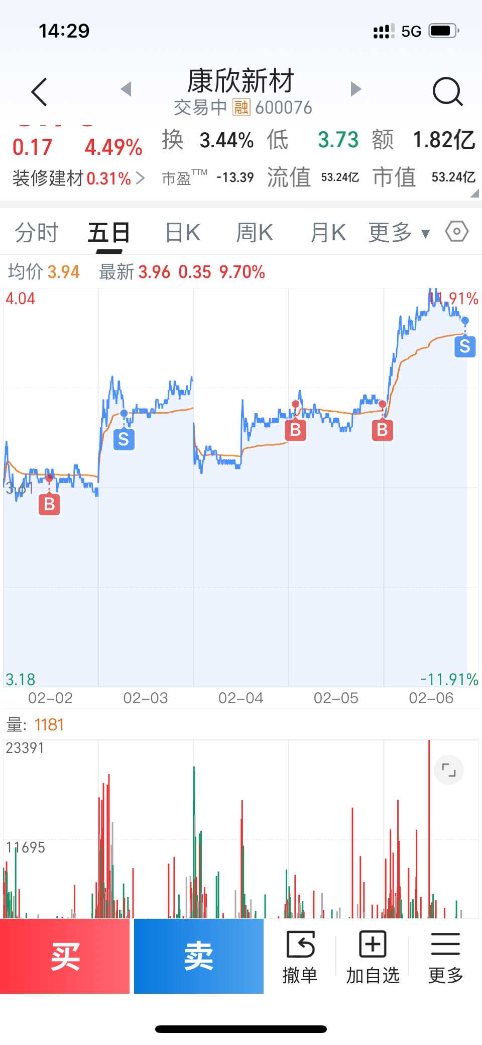 $康欣新材(SH600076)$ 最近做T还行