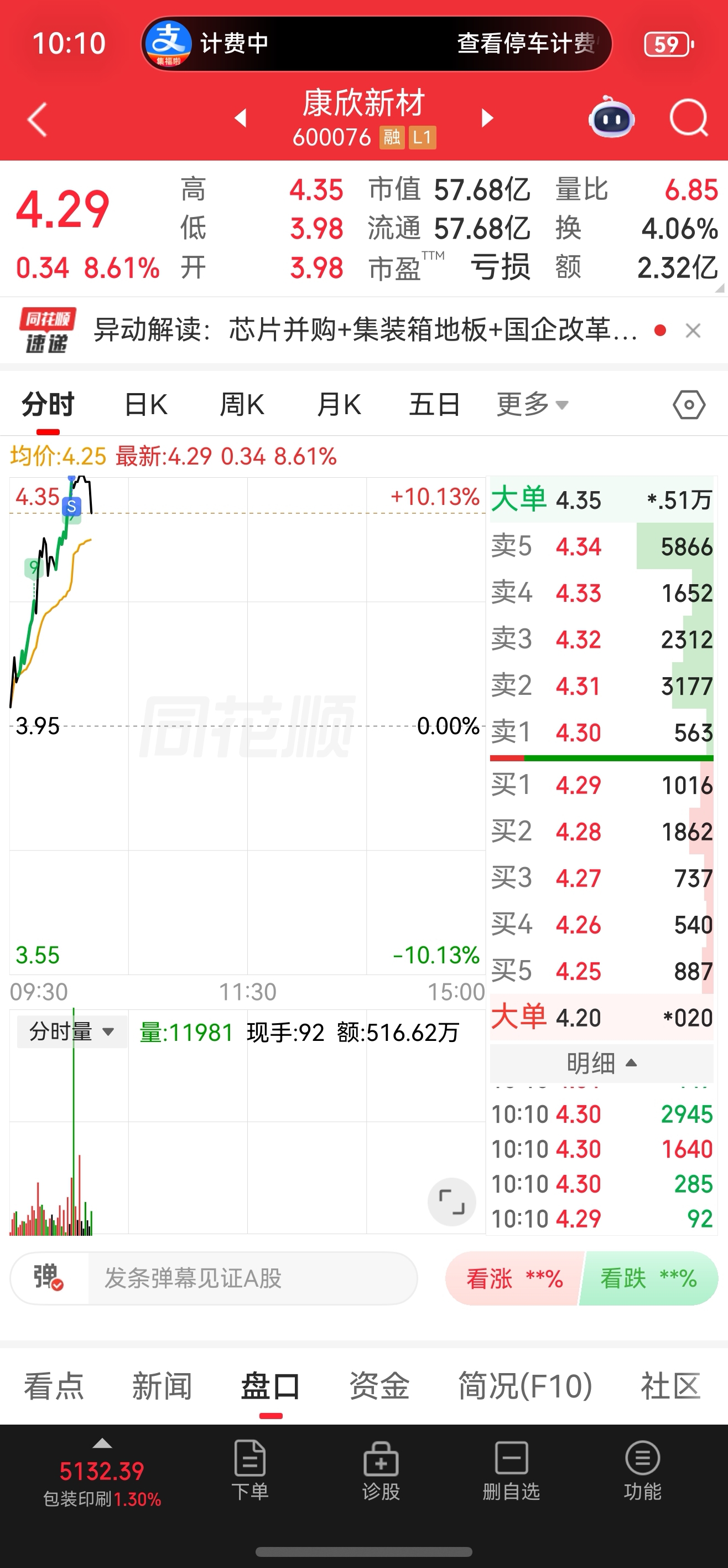 $康欣新材(SH600076)$ 涨了卖,跌了买。