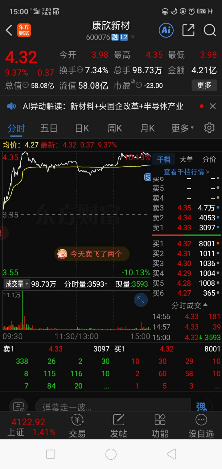 尾盘14.56分涨停少二分卖出只留了一点底仓!期待有利好,不然百分百要回调了,个