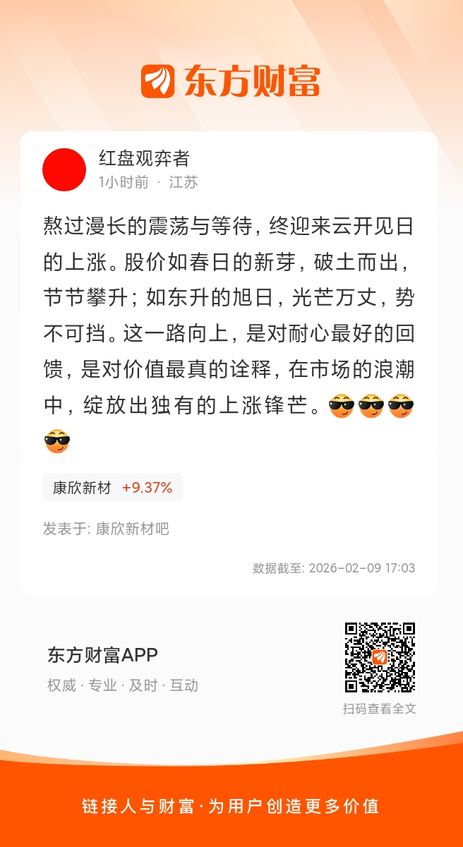 温馨提示: 1.根据《证券法》规定,禁止编造、传播虚假信息或者误导性信息,扰乱证券市场;2.用户在本社区发表的所有资料、言论等仅代表个人观点,与本网站立场无关,不对您构成任何投资建议。用户应基于自己的独立判断,自行决定证券投资并承担相应风险。《东方财富社区管理规定》