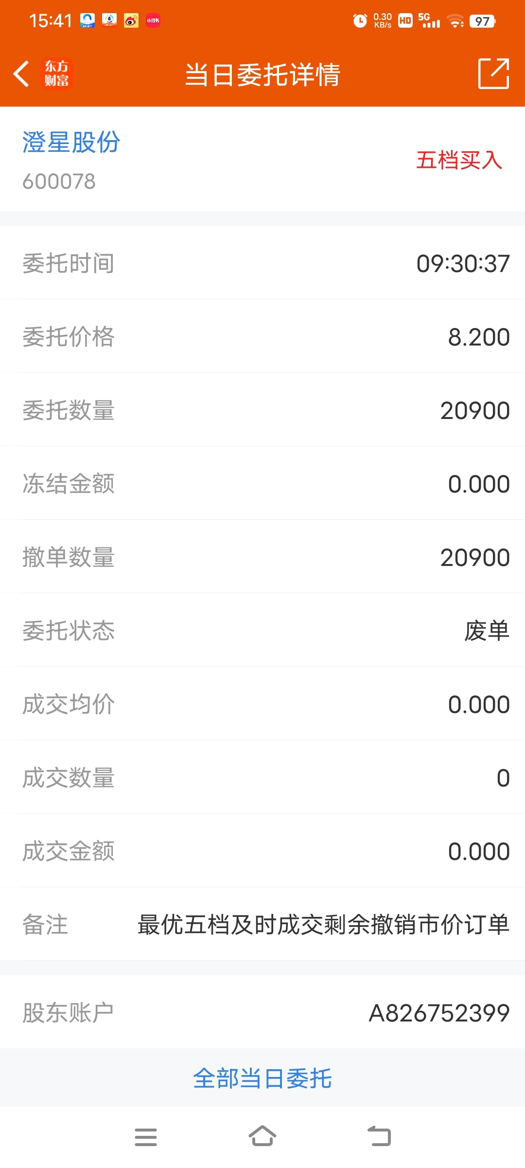 $澄星股份(SH600078)$ CTM挂单变废单为什么?星期一一字板要气死我,买了另外还吃面,日TM