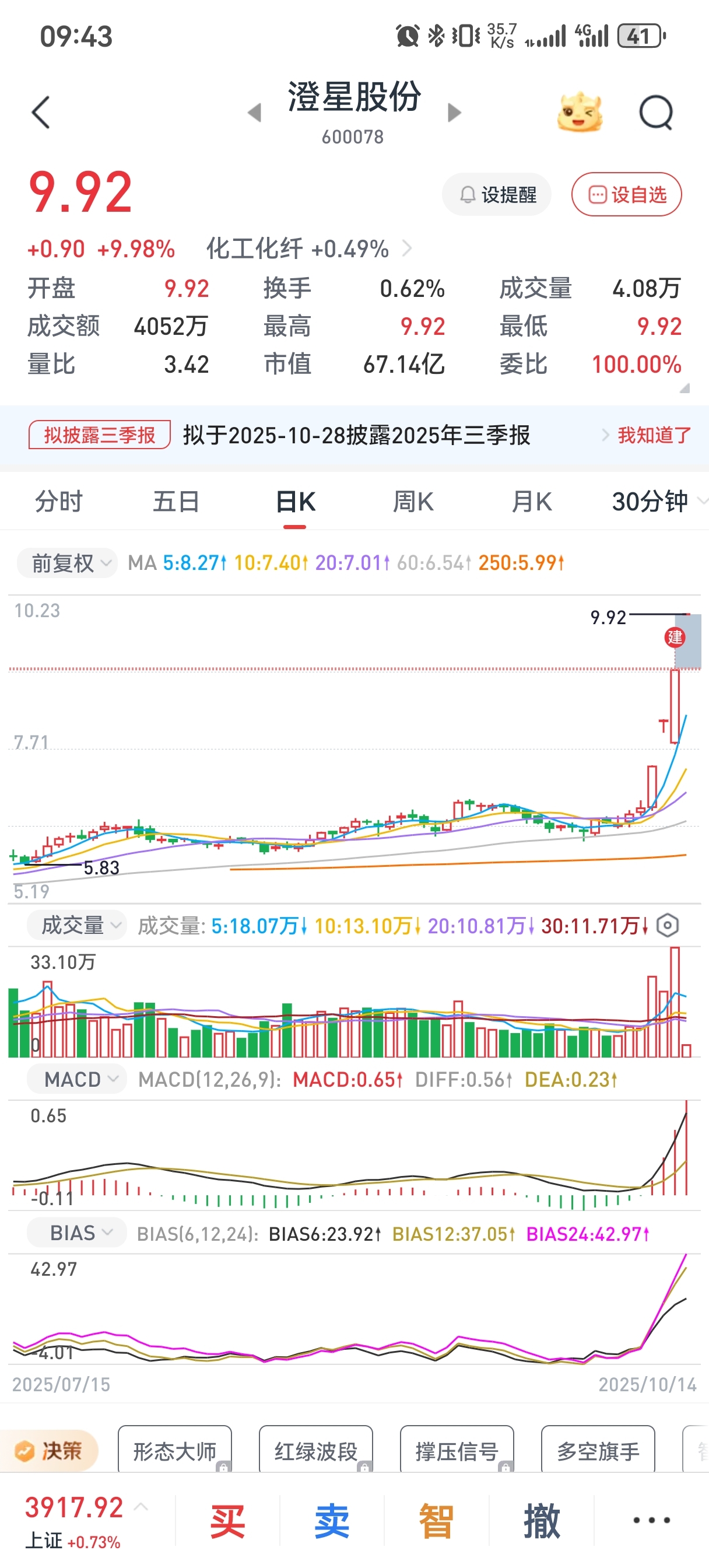 $澄星股份(SH600078)$ 昨天排板进的,只买了小仓位,今天开一字,超预期,竞价从19万手到开盘28万手封涨停板