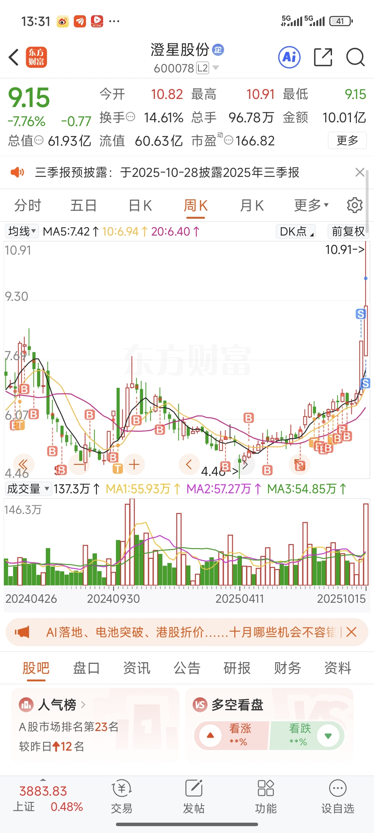 $澄星股份(SH600078)$ 兄弟在这个股熬了2年,终于回本清仓了