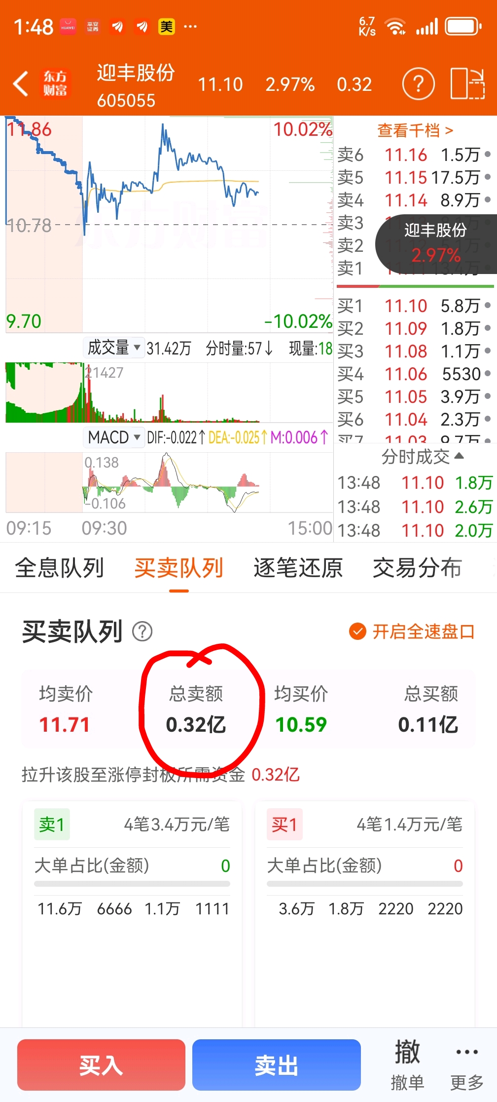 $迎丰股份(SH605055)$  3000万轻松拉涨停板,后面至少还有五个涨停板