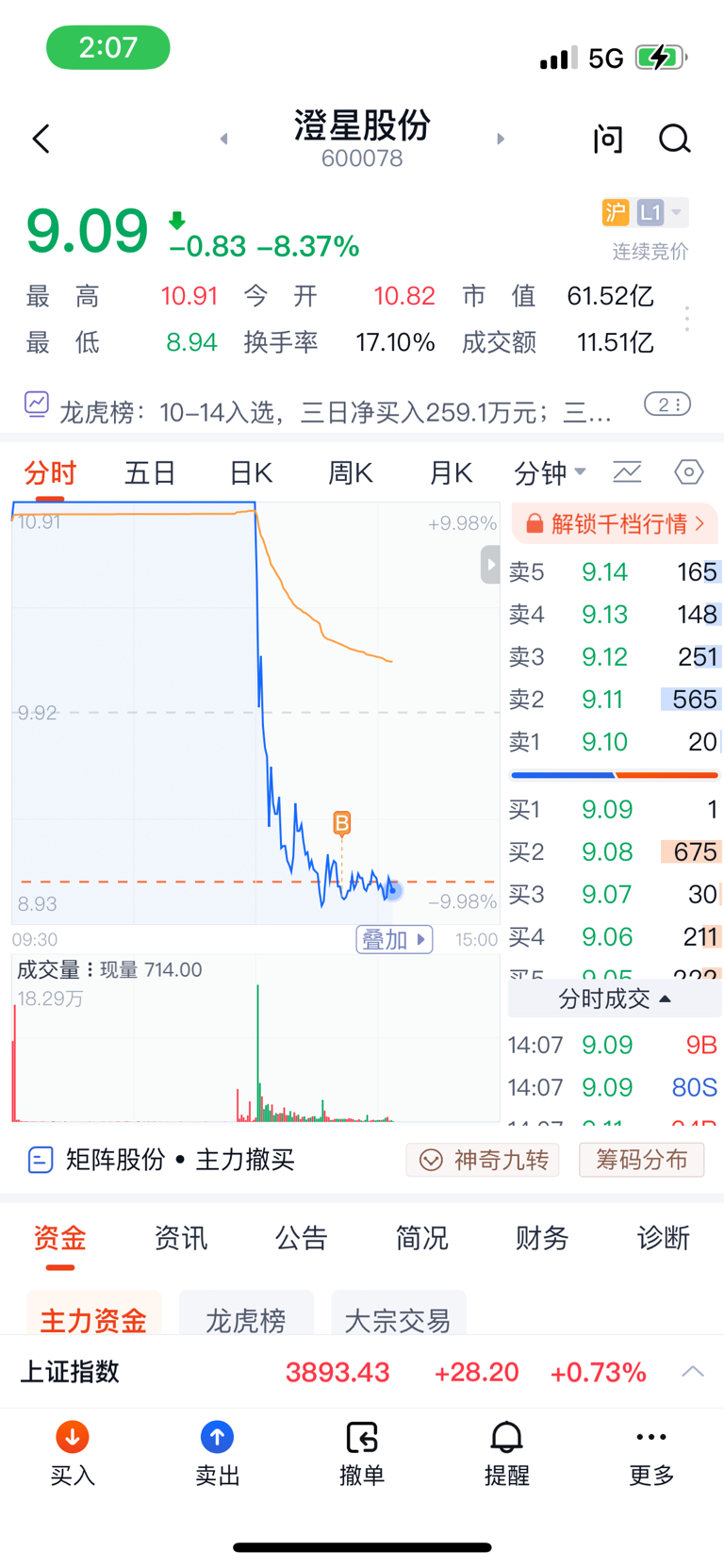 $澄星股份(SH600078)$ 909博下明天反包三成