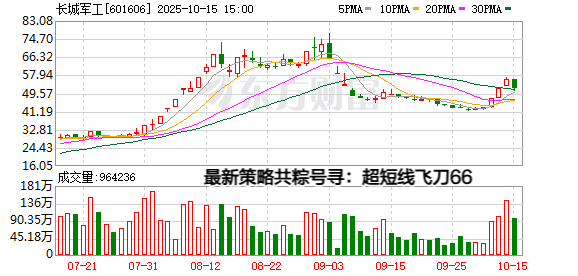 长城军工,军品业务包括迫击炮弹系列、光电对抗系列、单兵火箭系列、引信系列、子弹药系列、火工品系列的研究、设计、生产、总装和销售。目前军工行情偏弱一些,总得来看不如大盘,所以短线行情不理想。日线已拐头向下,明日将死叉10日线,短线多头格局被破坏;60日线仍下行,整体处于下降通道中的超跌反弹段,本次涨停未能扭转中期趋势;MACD红柱缩至零轴附近,DIF即将死叉DEA,反弹动能耗尽。需要规避一下。