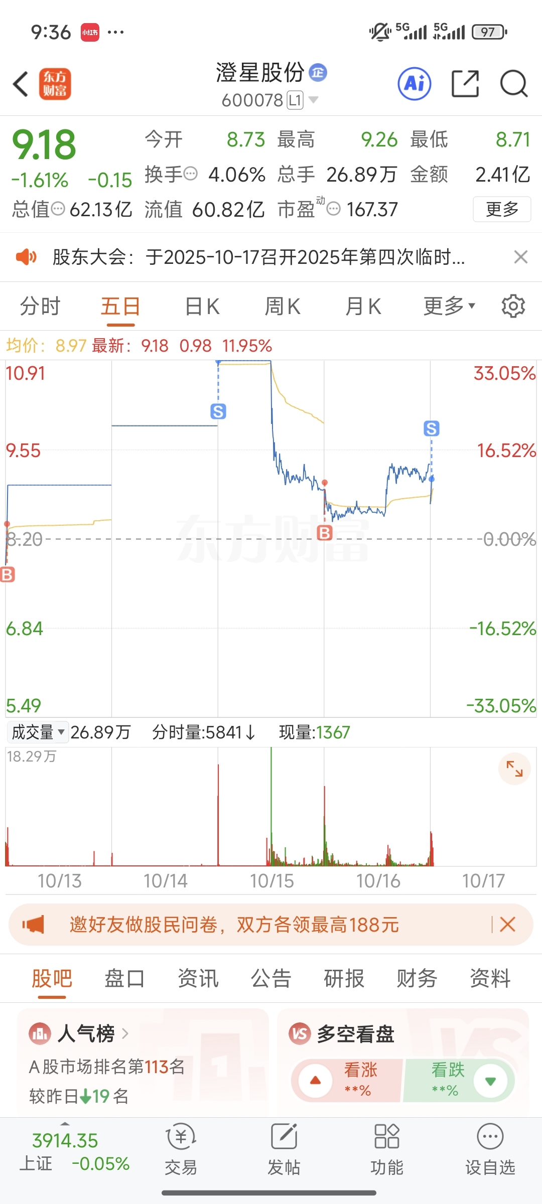 $澄星股份(SH600078)$ 落袋为安 今天卖飞也不后悔。