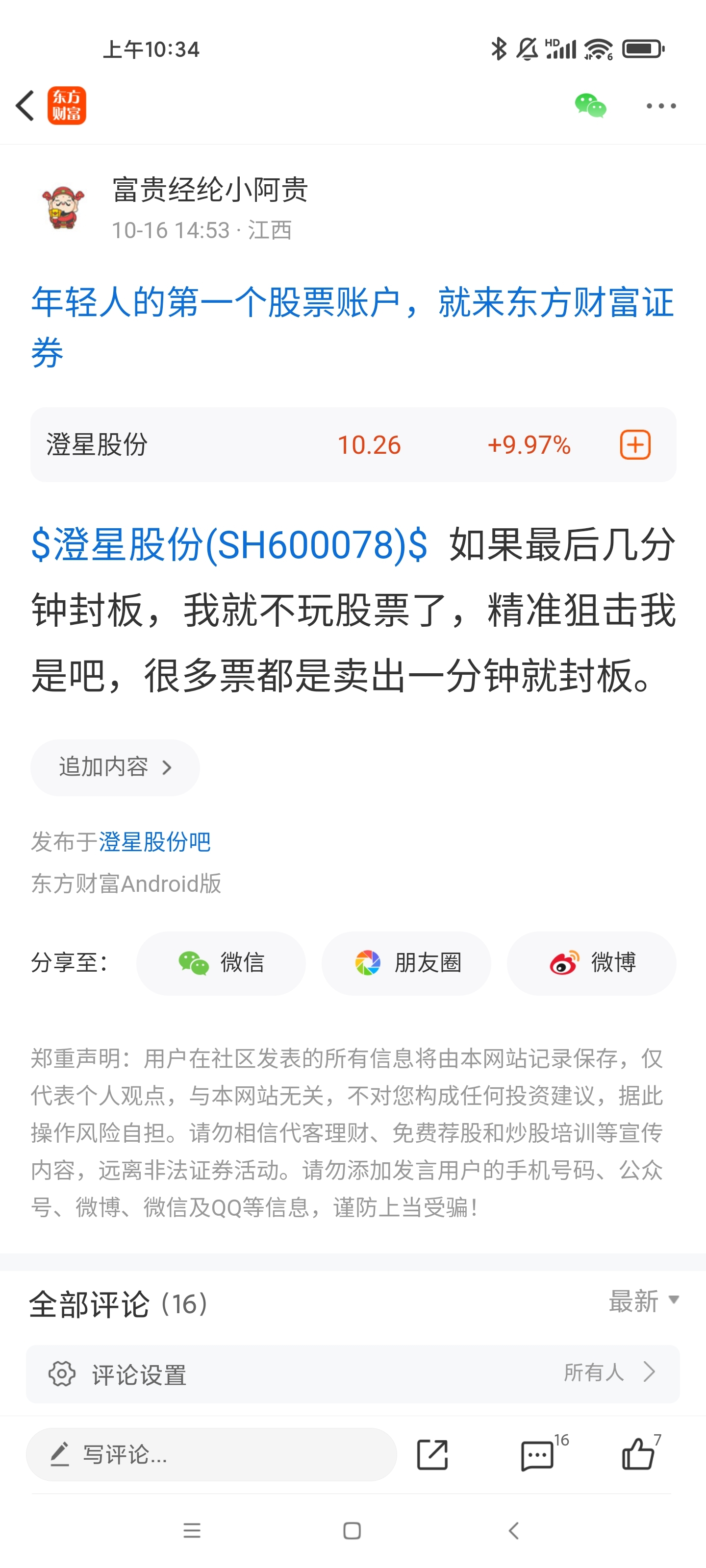 温馨提示: 1.根据《证券法》规定,禁止编造、传播虚假信息或者误导性信息,扰乱证券市场;2.用户在本社区发表的所有资料、言论等仅代表个人观点,与本网站立场无关,不对您构成任何投资建议。用户应基于自己的独立判断,自行决定证券投资并承担相应风险。《东方财富社区管理规定》