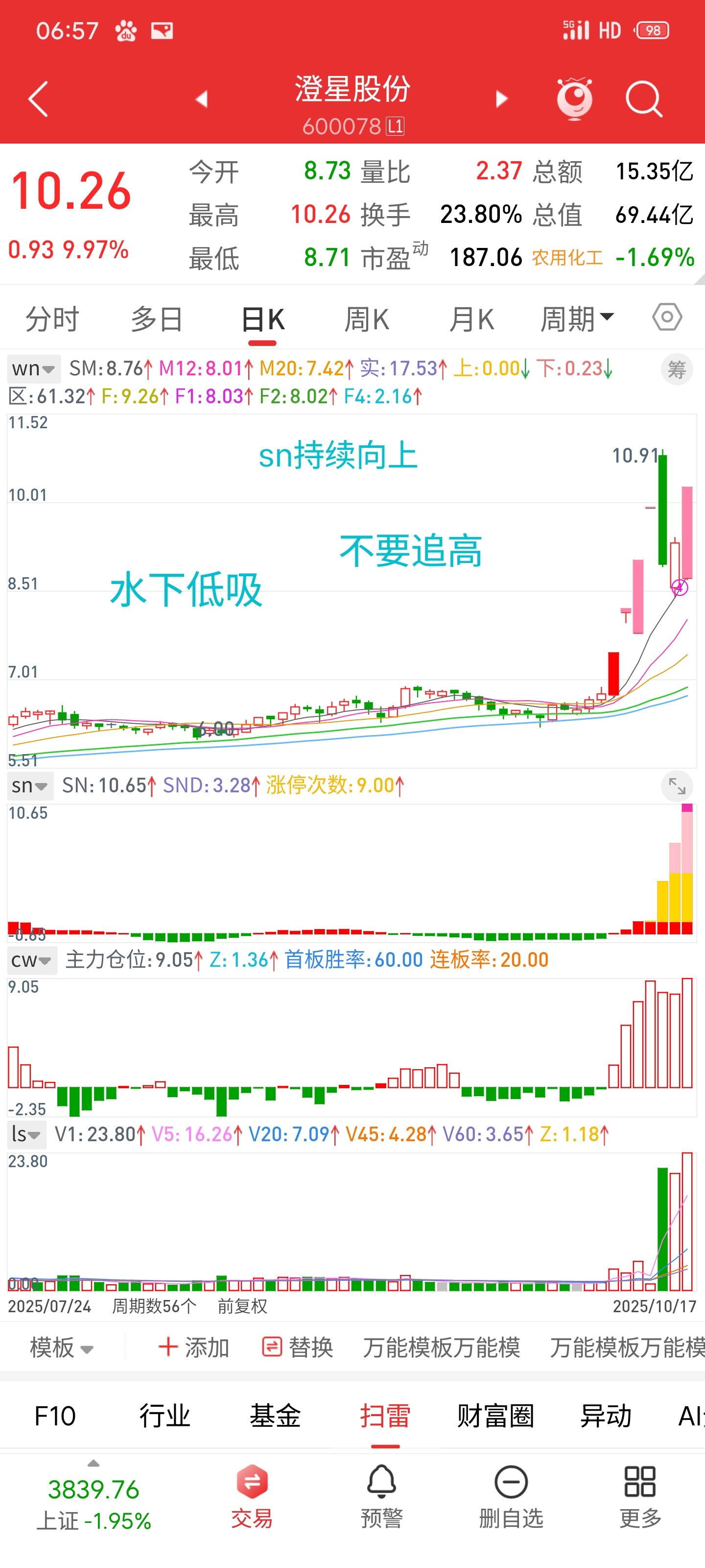 $澄星股份(SH600078)$ 目前来看还是很好的走势,sn和cw一直在持续向上,有机会可以进场。前面已经下跌释放了压力。但是不要追高。