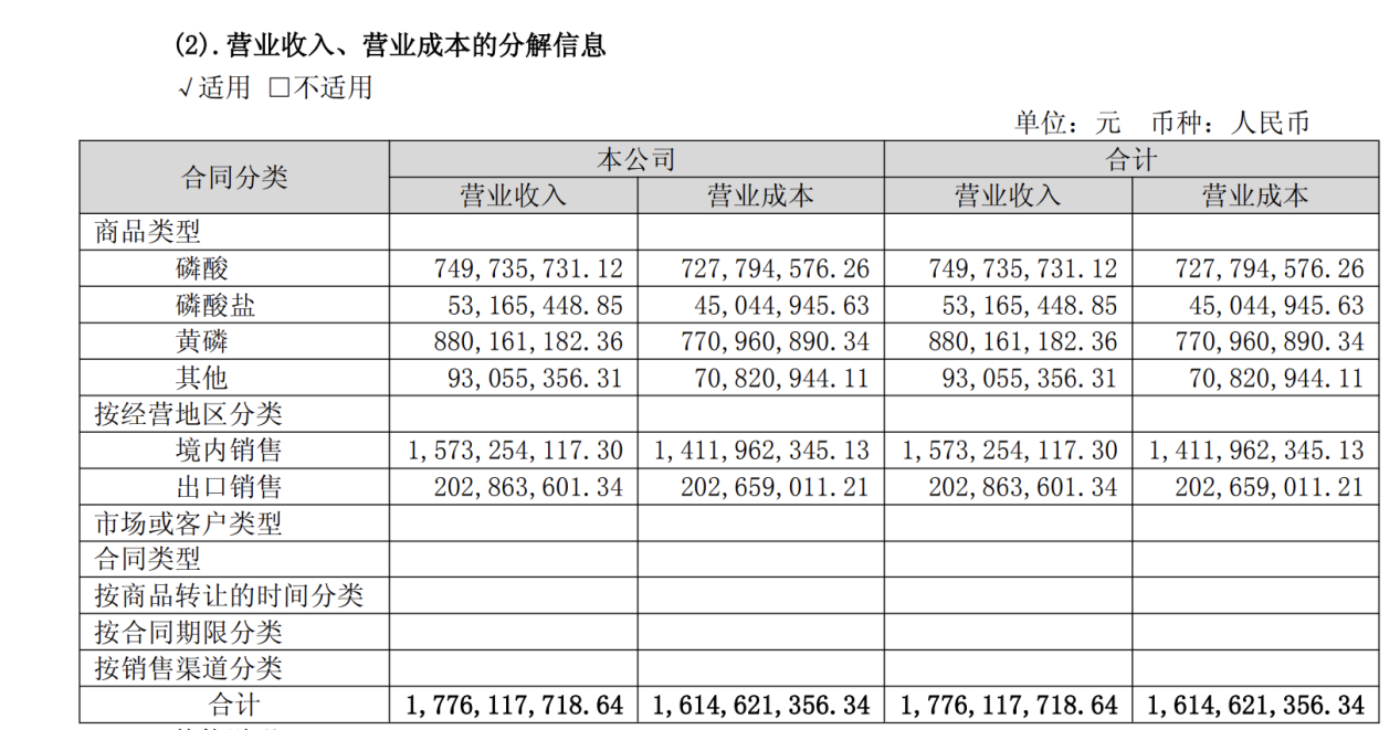 2025年上半年,公司实现营业收入17.76亿元,同比增加9.85%,实现归母净利润1856.12万元,同比实现扭亏为盈。其中,黄磷相关营业收入超8.8亿元,约占公司总营收的50%。
