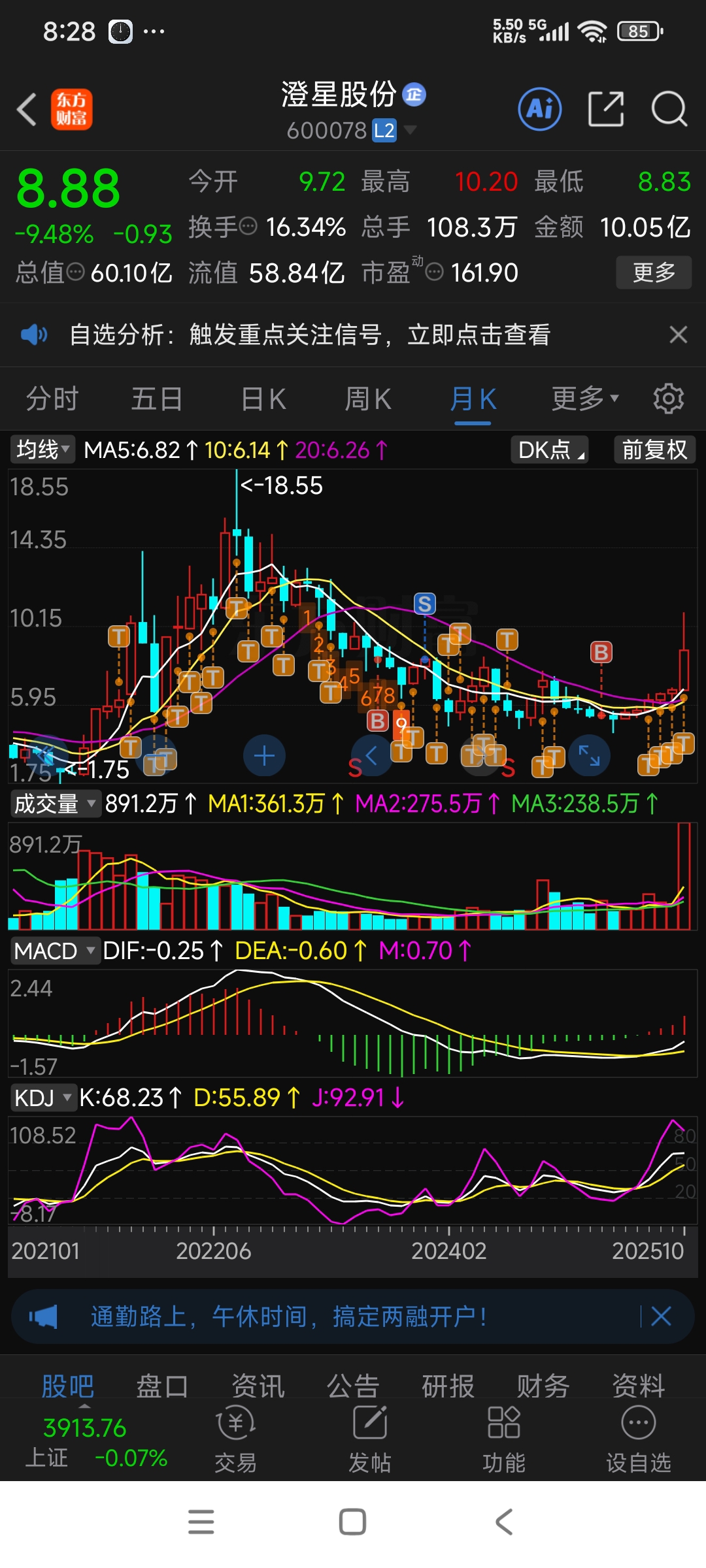 $澄星股份(SH600078)$ 辛辛苦苦四年,刚回本,搞了个寂寞。龙虎榜看到江阴老庄出货了,没行情了