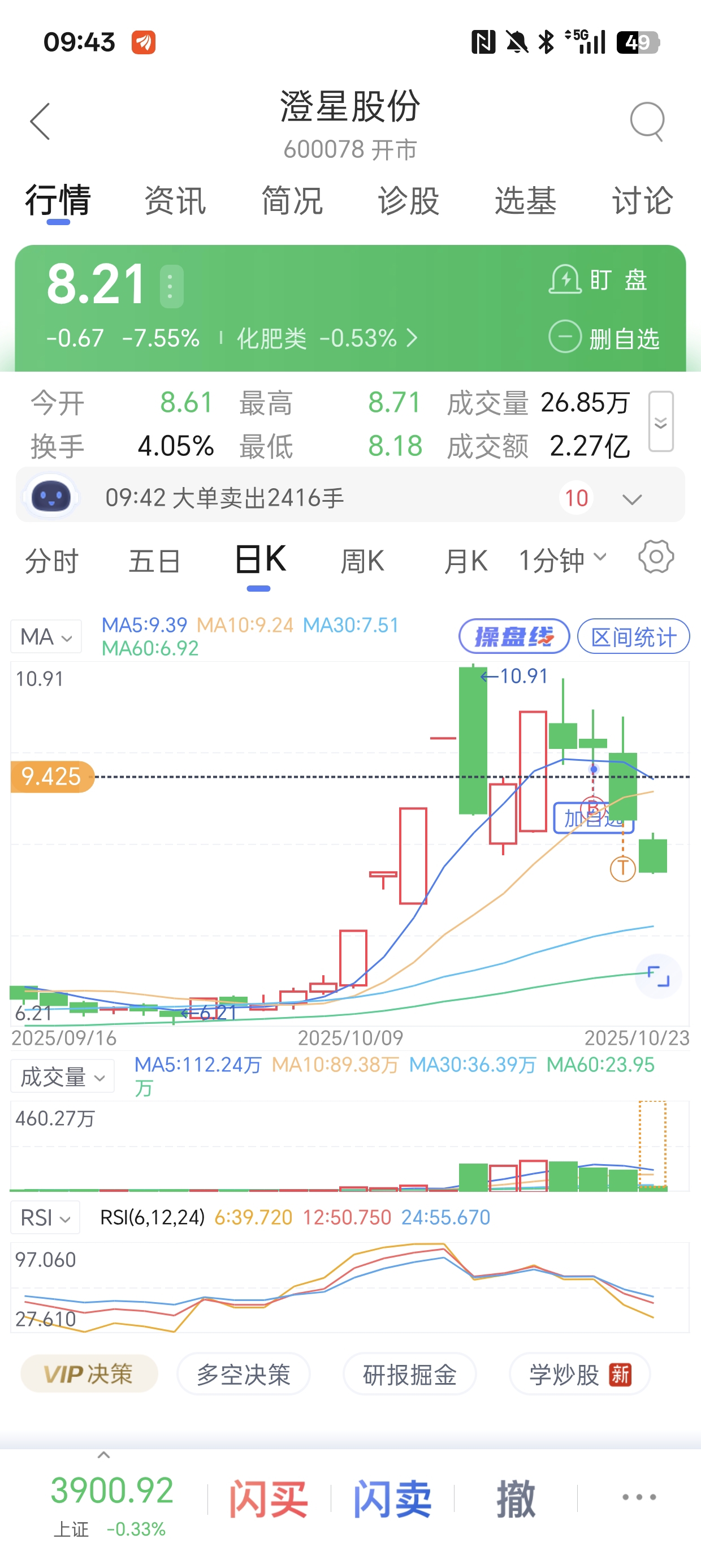 $澄星股份(SH600078)$ 牛三天亏我20点