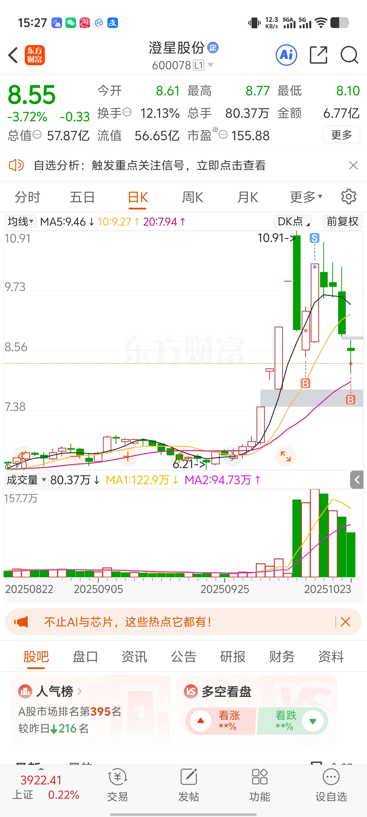 $澄星股份(SH600078)$ 超短选手的黄金律法!!别人恐惧我贪婪!