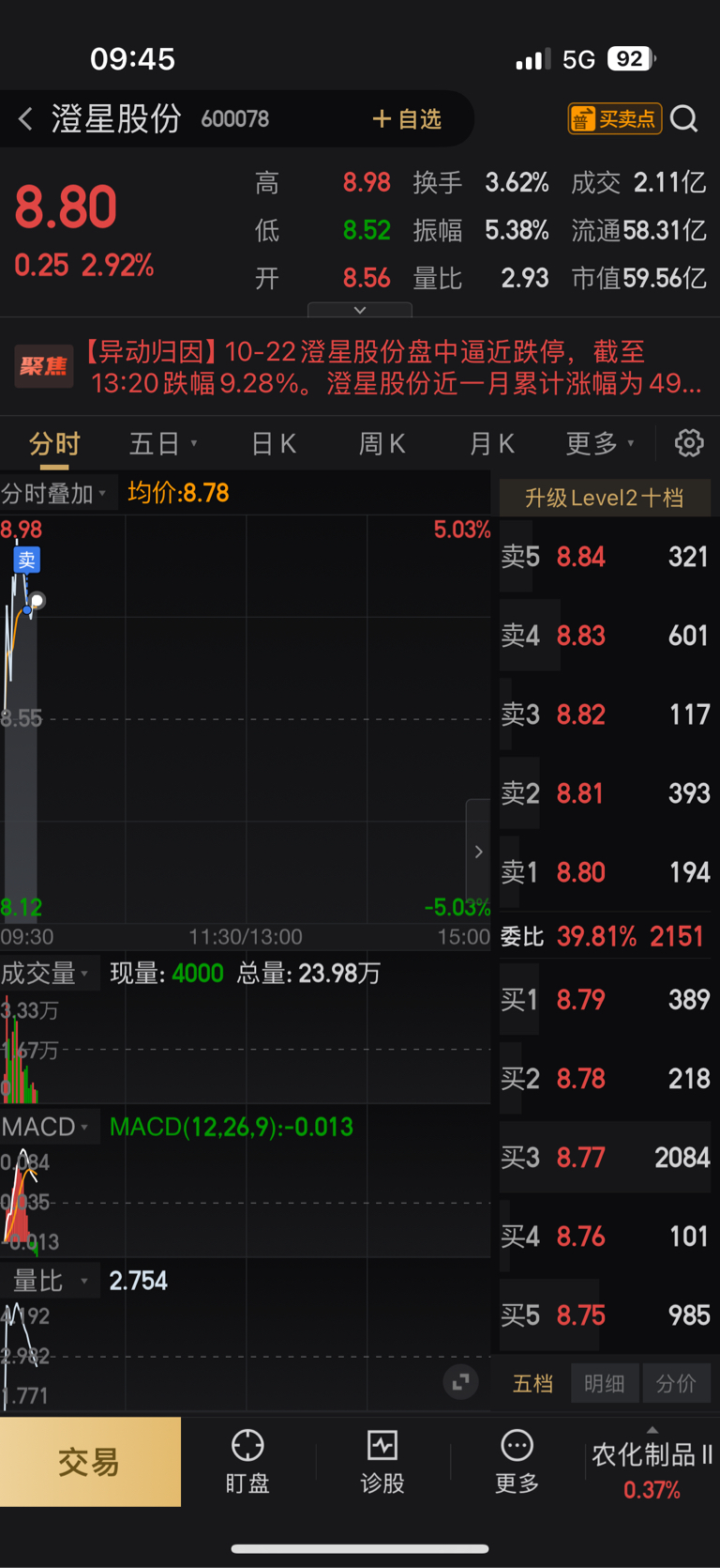 $澄星股份(SH600078)$ 胆子小跑了