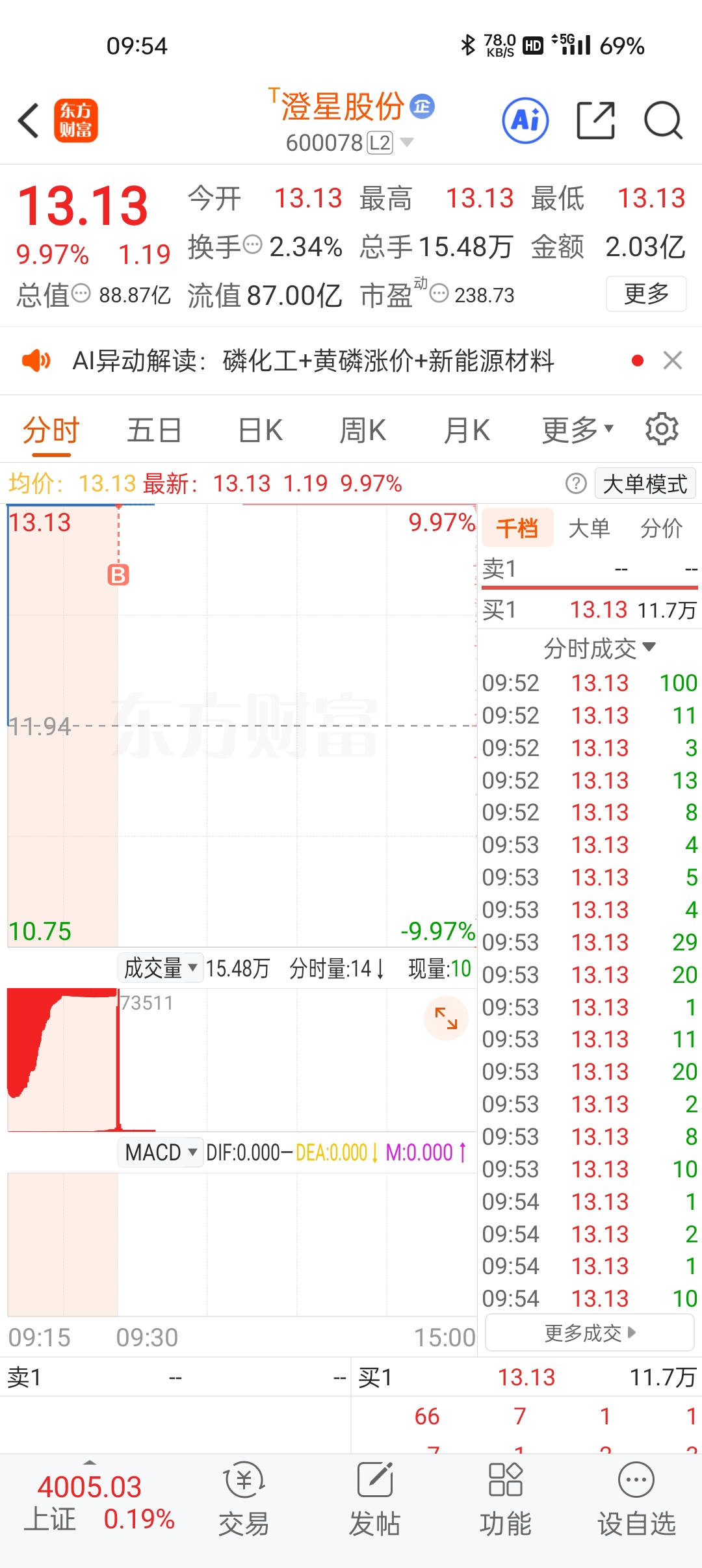 $澄星股份(SH600078)$ 合富逆天了,3进4就吃了一个板