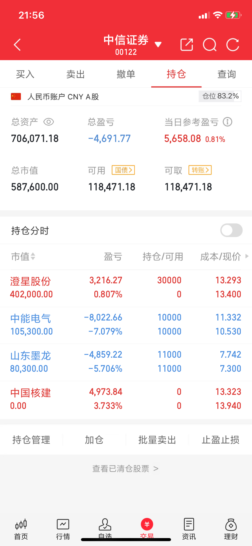 11.11持仓小结:新进,后续走势留待明日观察;山东墨龙寄予厚望,盼其不负“龙”
