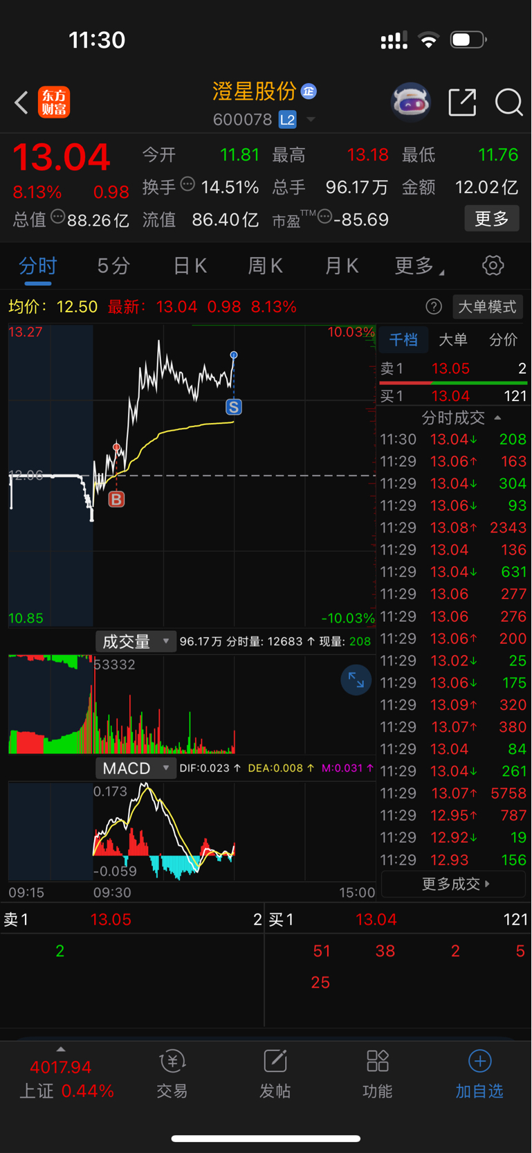 $澄星股份(SH600078)$ 就这样吧,下午涨不涨停的也无所谓了。