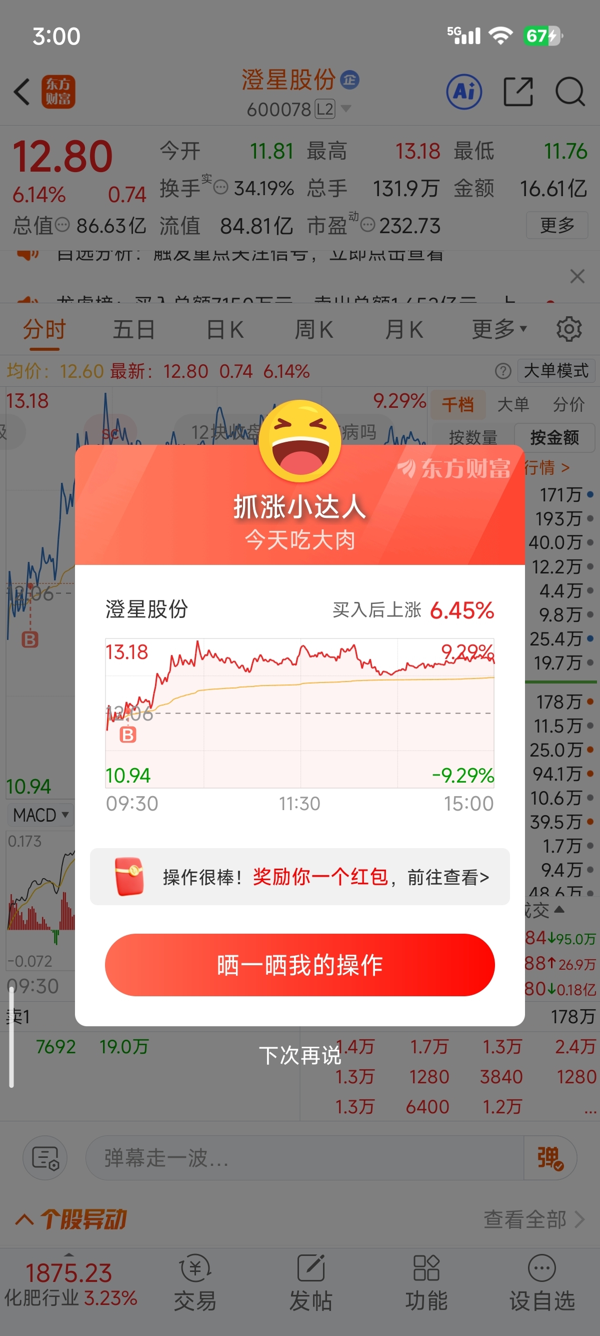 $澄星股份(SH600078)$ 看明天能不能继续上涨