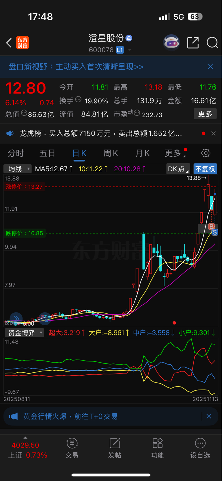 $澄星股份(SH600078)$ 我走了,留下的兄弟继续发财