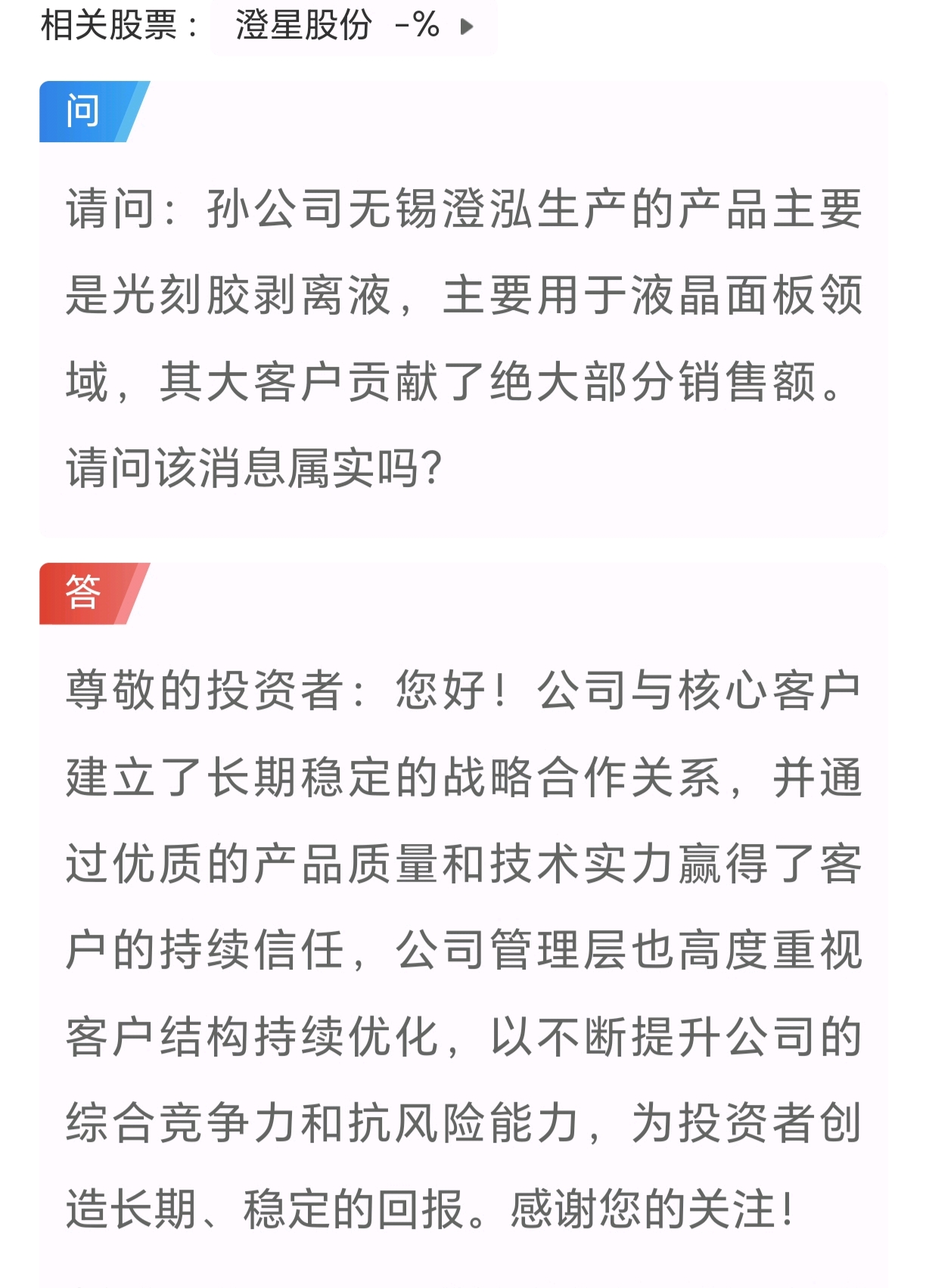 $澄星股份(SH600078)$ 澄星股份拥有自主可控的光刻机剥离液