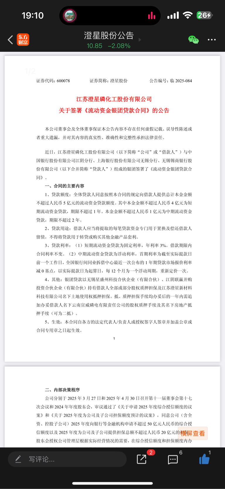 $澄星股份(SH600078)$ 利好么?今天刚问就出了