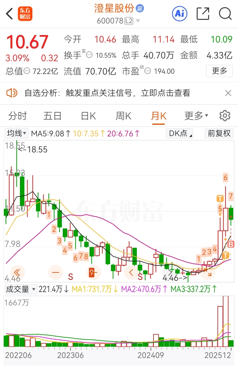 $澄星股份(SH600078)$ 继续持有,等待材料价格继续上行……