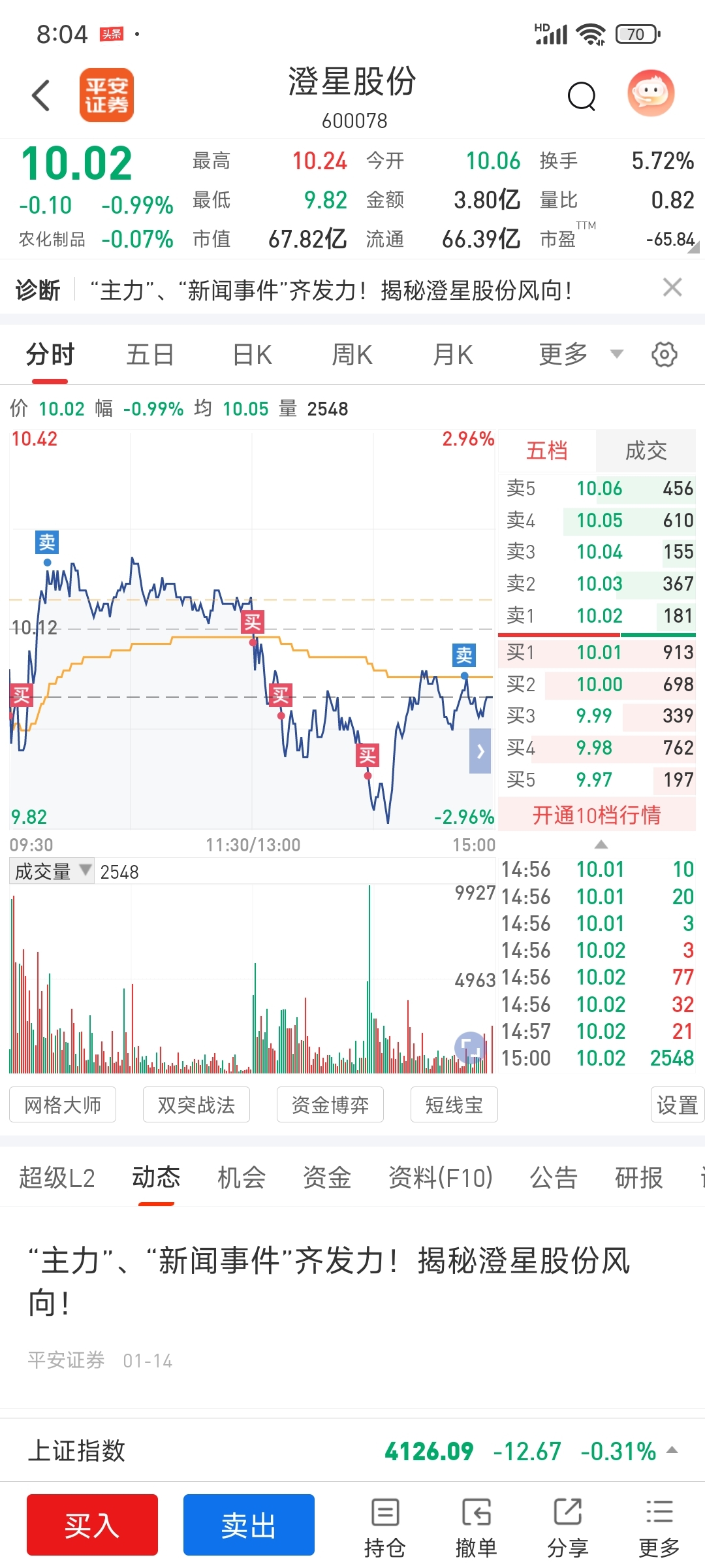 $澄星股份(SH600078)$ 敢跌就敢买。大户做T我就跟着做