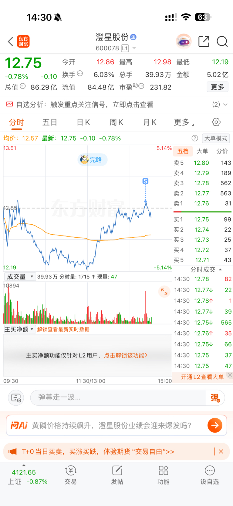 $澄星股份(SH600078)$ 涨也好跌也好,先回家过年,就这样了。