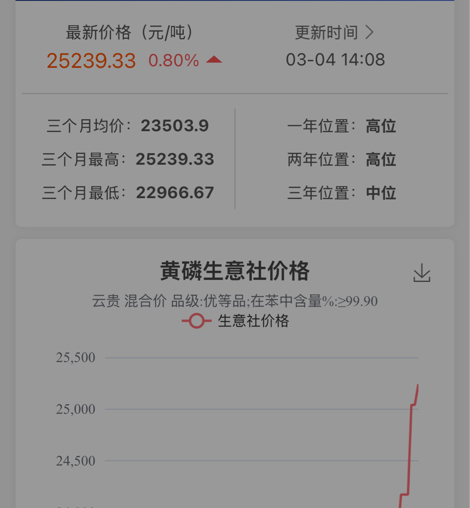 $澄星股份(SH600078)$ 黄磷价格今日小涨!!!